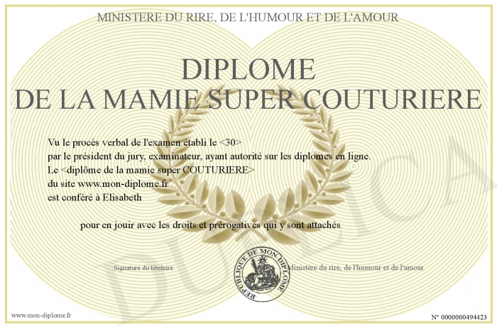 Gratuit Diplome De La Mamie Super Couturiere